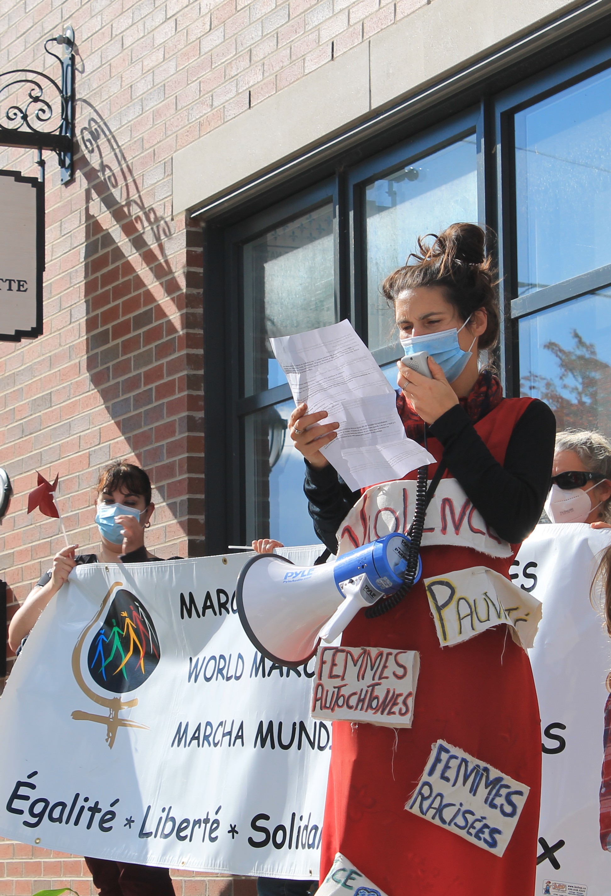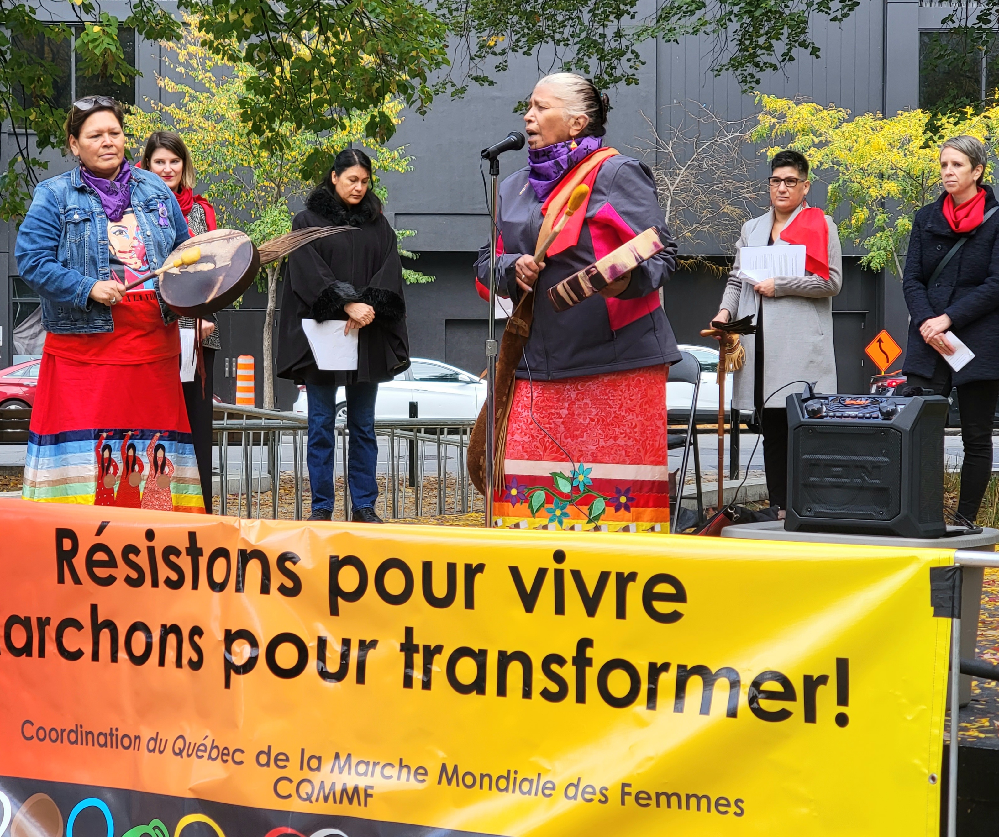La conférence de presse nationale s’est tenue dans l’avant-midi du 17 octobre, au Square Cabot à Montréal, avec diffusion en direct sur Facebook. Après l’intervention d’une leader spirituelle Mohawk qui nous a fait vivre une prière traditionnelle, les porte-parole ont tour à tour pris la parole pour contextualiser les 5 revendications portées. Le tout s’est conclu sur la lecture du manifeste par des militantes de divers horizons. Notons que les grandes chaînes de nouvellesd’info en continu étaient présentes lors de la conférence de presse.