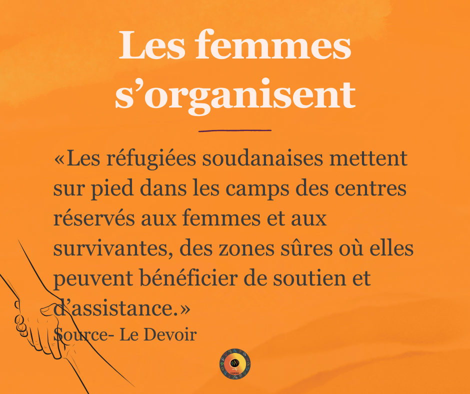 Malgré ces conditions extrêmes, les femmes s’organisent. Dans les camps de réfugiés, des femmes soudanaises mettent sur pied des espaces sûrs, offrant soutien, solidarité et accompagnement aux survivantes.