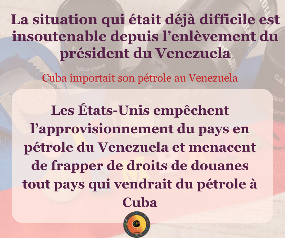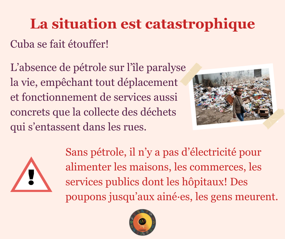 Nous devons faire pression sur nos gouvernements pour qu’ils refusent de se plier aux logiques de sanctions qui mettent en péril des populations entières. Certains pays ont déjà fait le choix de maintenir ou de reprendre un approvisionnement en pétrole vers Cuba, malgré les pressions, démontrant qu’il est possible d’agir autrement.