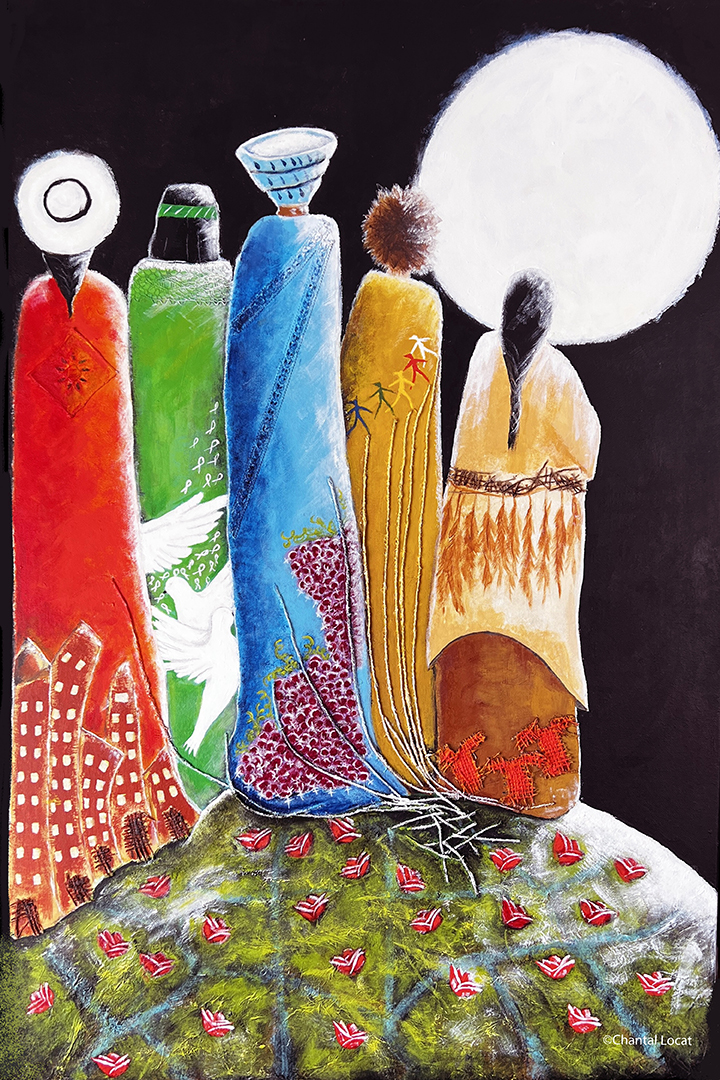 Nous avons l'honneur de vous présenter une œuvre unique de l'artiste Chantal Locat. Cette magnifique toile, réalisée en acrylique sur toile et papier de soie, est une pièce maîtresse de notre campagne de financement 2025.