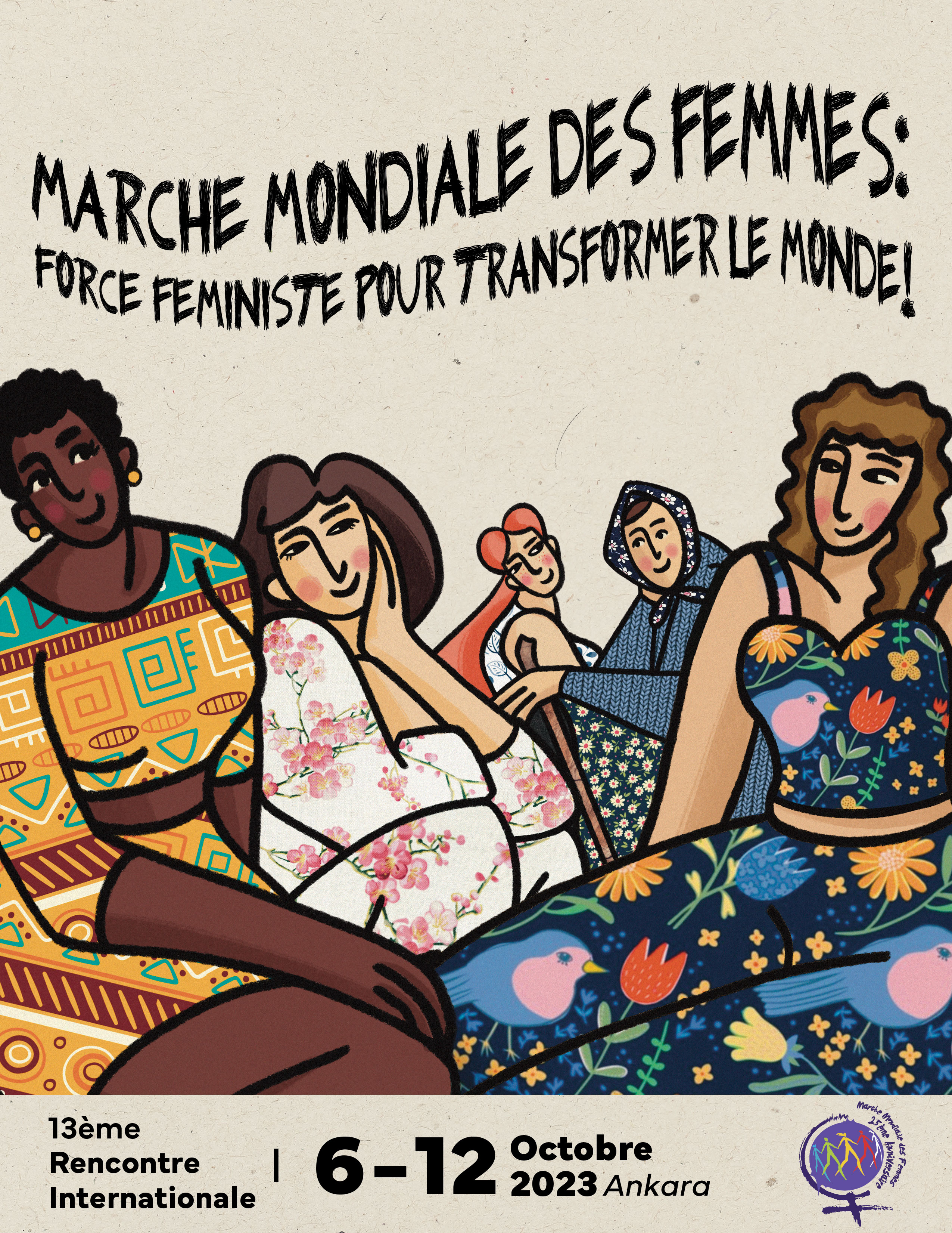 Du 21 novembre 2023 jusqu'à la fin de l'année 2024, nous invitons des militantes de la Marche mondiale des femmes des 5 régions du monde afin de nous partager les luttes et résistances qu'elles mènent en regard à différentes facettes essentielles à notre bien-vivre ensemble. Ces rencontres seront l'occasion de nous mettre en contact avec les thèmes clés de l'économie féministe.